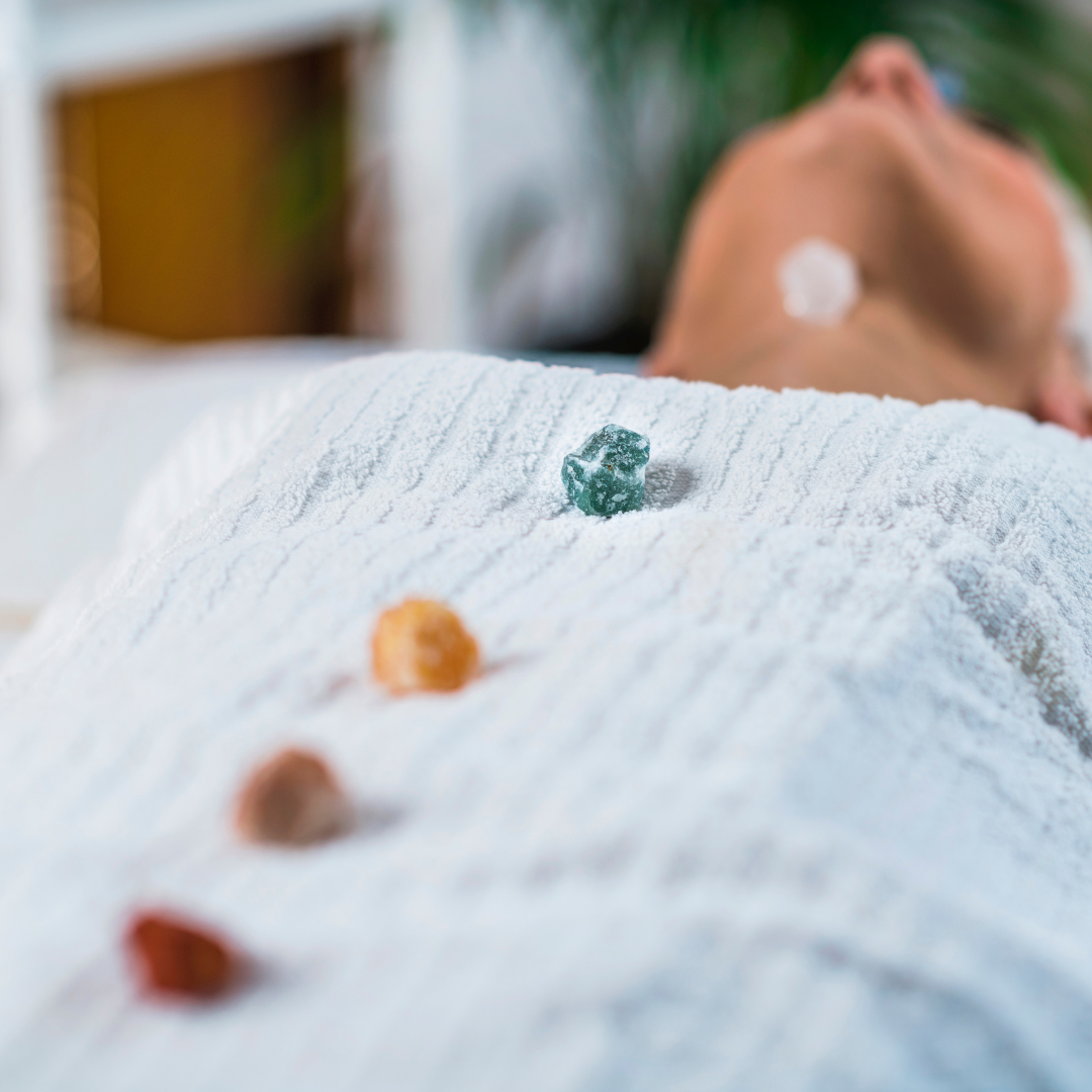 Focuses on balancing the seven chakras using Reiki, healing stones, and sound tools attuned to each energy center. Your practitioner will assess the energy field for imbalances and guide you toward energetic harmony. Includes grounding techniques and space for intuitive reflection.